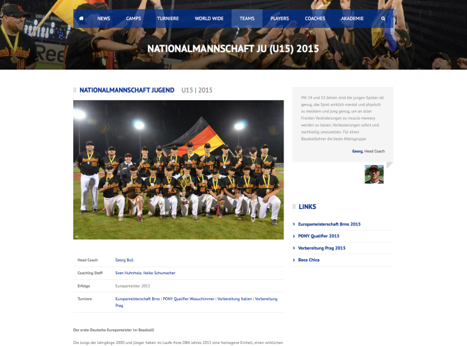 Geschafft: Gut ein halbes Jahr dauerte die Neukonzeption und grafische Gestaltung der Homepage für die Deutsche Baseball Akademie (DBA). Die neue, responsive Seite setzt auf optimierte Benutzerführung, optisch reizvolle Gestaltung und interactive Vernetzung. Programmierung übernahm Webthinx.